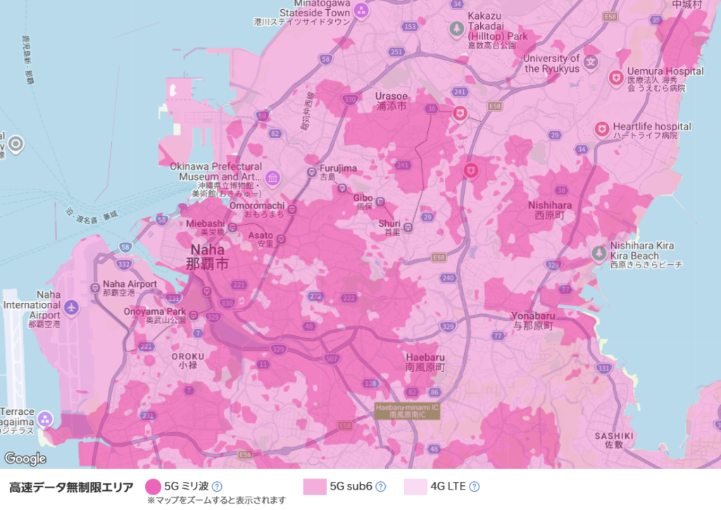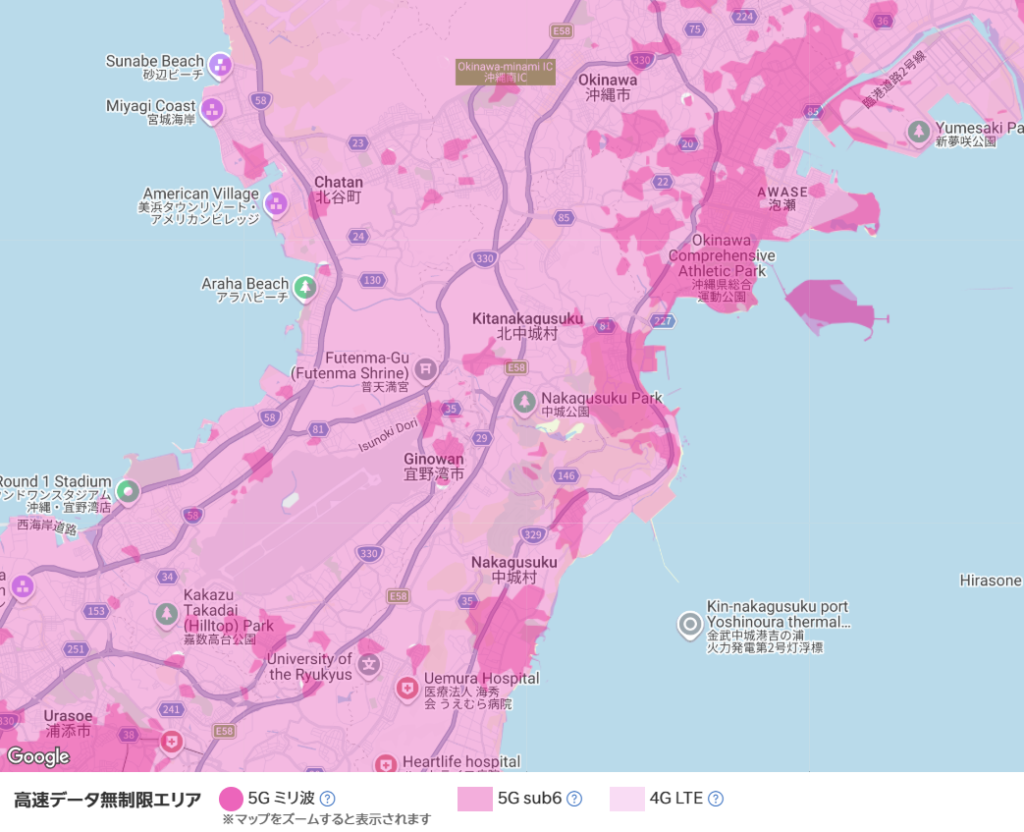 沖縄の観光地は、それぞれ属する市町村の通信状況によって速度が異なります。